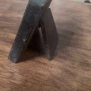 Research leads me to believe this is from the 1920's. It is marked made in England. The back is a wooden back and stand. The frame is black metal and is missing paint, No signature or others markings.