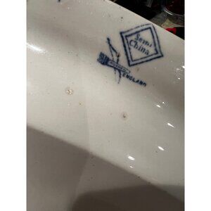 This Antique Ridgway serving platter showcases a classic blue and white willow pattern, adding a touch of elegance to dining settings. It's made of semi china, ensuring durability and a timeless aesthetic. Ideal for serving meals or as a decorative piece in the kitchen or dining room.