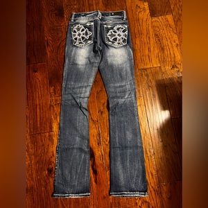 These are Antique Rivet jeans. These were my favorite jeans so I’m really sad to get rid of them. They just didn’t fit anymore. But they are in great condition! They are a size 25.