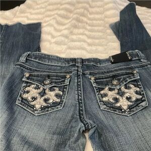 Antique Rivet Women’s Raw Hem Embellished Jeans Size 28