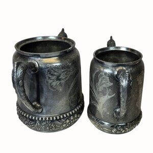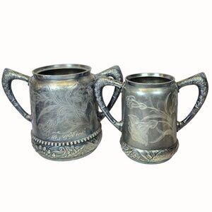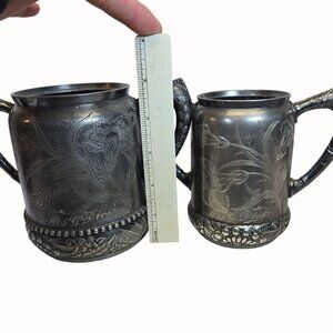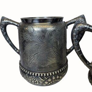 Antique Rockford Silver P Co. Sugar & Cream Dish floral etched rare