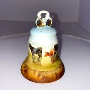 Antique Royal Bayreuth Tapestry Cows Scene Porcelain Bell
