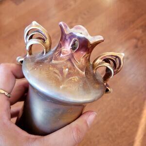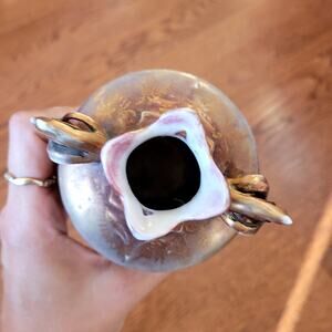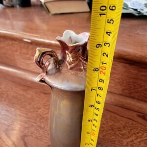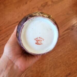 This is an antique Royal Vienna glass vase in excellent condition. The vase features a golden burgundy red color with beautiful floral details. This vase would be a wonderful addition to any home or collection.