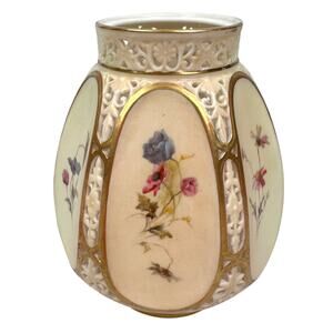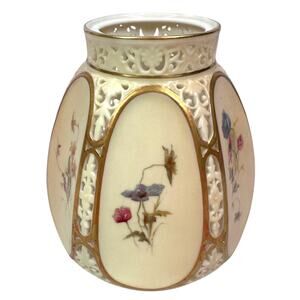 Antique Royal Worcester Pot Pourri Vase 5" Iory Gold Floral Decorative England