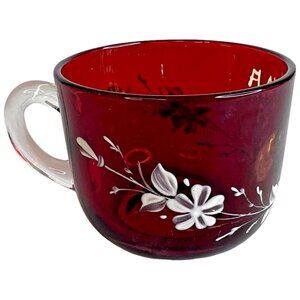 Antique Ruby Red Flash White Clear Grandma 1897 Mug Cup Hand Painted Flowers