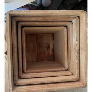 Antique Rustic Wooden Nesting Chicken Rooster Canister Set Of 4 Boxes