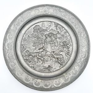 Antique SKS Zinn Hanging Plate 95% Pewter Rare Germany Farming Sheppard Scene