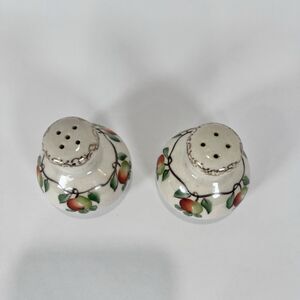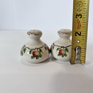 Antique Salt And Pepper Shakers Hand Painted Apples And Gold Motif
