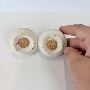 This is a set of two antique salt and pepper shakers. Made of ceramic, these small round shakers are adorned with an apples and a hand painted gold detail. They are old and definitely a beautiful reminder of times gone by. As with any antique or vintage item they show signs of wear and age. I have hand washed them to send them off to their new home. When purchasing please note that they are as is and that I recommend not placing in the dishwasher because of the delicate hand painted decor. Please hand wash if needed and let dry.