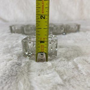 Each measures about 1 1/2 inches in length and width. 1 inch depth. They are very clean and clear. No cracks that i can find.
