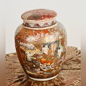 Antique Satsuma Japan Hand Painted Covered Ginger Jar