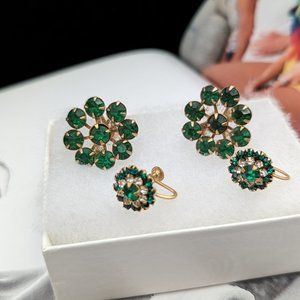 Antique Screw on Green Crystals Prong Set of Quality Made Earrings Gold Plate