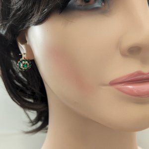 With Diamond cut Crystals dark emerald green and they are set on a gold tone.