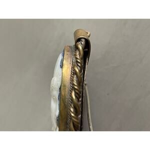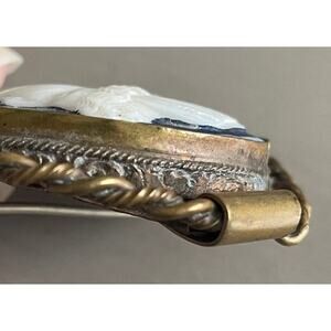 Antique Shell Carved Cameo Brooch of Godess Psyche Blue Background Large