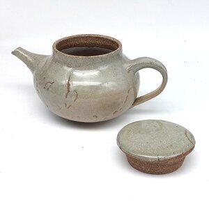 Antique Shino Glazed Teapot, Vintage Small Stoneware Pottery Tea Pot