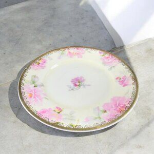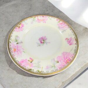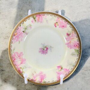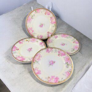 Antique Silesia Porcelain Ceramic Round Dish Plate Hand Painted Floral Gold Set4