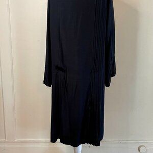 This vintage duster coat is a stunning piece from the 1920s, crafted in France by Au Printemps Paris. Made of 100% silk, this black coat features an elegant Art Deco style, typical of the era. With a size of S/M, this original piece exudes timeless sophistication and French craftsmanship. Perfect for adding a touch of vintage flair to any outfit, this antique silk coat is a unique find for those who appreciate classic fashion from the 1920s.