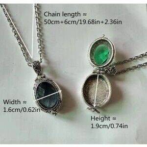 Antique Silver Green Stone Poison Locket Ashes Pill Necklace