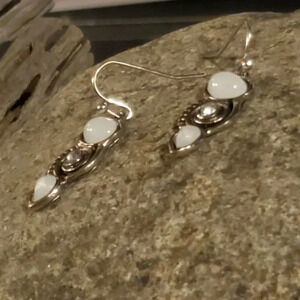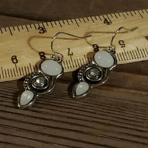 Antique Silver Opalescent Cabochons Crystal Abstract Dangle Earrings