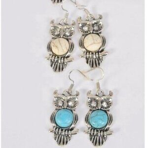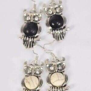 Silver Owl Semiprecious Black stone dangle Earrings NEW in package. Also Available in: White or Turquoise Blue stone. All NEW in Original Package. Earrings have a Southwestern Bohemian look with Stainless steel ear wires on swivel hook. These Earrings have a matching Necklace also sold in my shop. If sold out and you dont see it listed please ask. I am happy to relist it for you! I also make jewelry so certain items in my shop can be custom made per request.