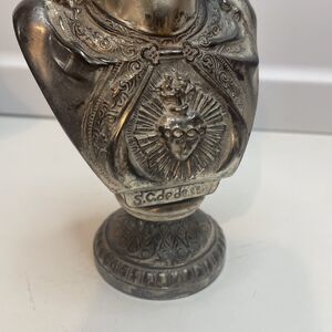 Antique Silver Plate Sacred Heart Statue Of Jesus About 7”H