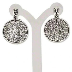 Antique Silver Plated Avant Garde Dotted Round Circle Dangle Earrings