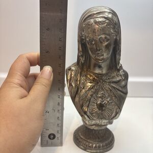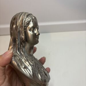 Antique Silver Plated Madonna SC De Maria Bust Religious Statue About 7” H