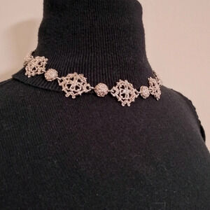 Antique Silver Tone Filigree Pendant Link Choker Style Necklace 16"