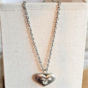 Antique Silver Tone and Rhinestone Heart Chain Necklace