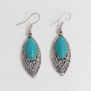 Antique Silver Vintage Style Engraved Western Turquoise Dangle Earrings