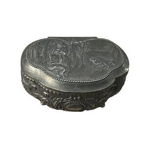 Antique Silver-Plated Trinket Box With Romantic Scene & Red Velvet Interior