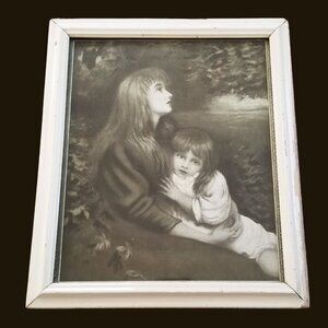 What a story this antique lithograph print of hauntingly beautiful sisters tells. From the early 20th century, possibly late 19th Century Victorian era.