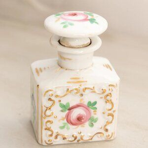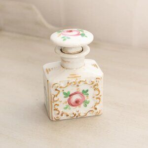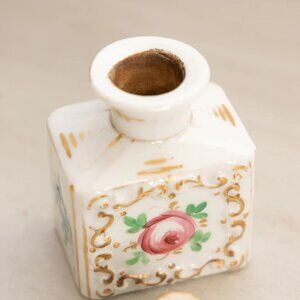 Antique Small White Ceramic Hand-Painted Floral Bottle
