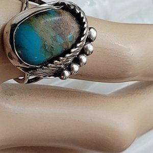 Antique Southwest Ring Blue Gem Nevada Turquoise GENUINE NAVAJO ZUNI ART