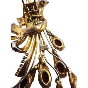 Details: Unsigned but a fabulous piece! Some plating has worn off and a few dark stones. It has a plaque on the back that probably had a mark. Stones are glass.