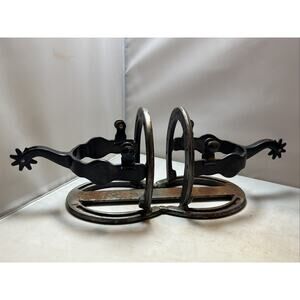 Antique Spurs and Horseshoes Wine Rack, Napkin Condiments Holder