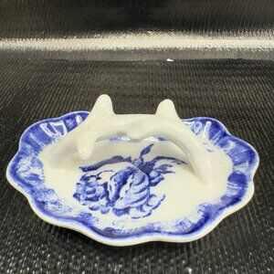 Antique Staffordshire Ironstone Lid Porcelain Flow Blue Rose Made in England VTG