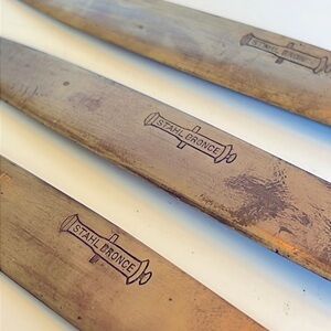 Antique Stahl Bronce Knives Germany Porcelain Brass Blade Hand Painted Appetizer