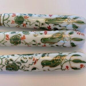 Beautiful 19th century set of three Antique Stahl Bronce Germany Porcelain Handled Fruit Knives. are in great condition, no chips or cracks, excellent antique condition. Perfect for fruit, cheese, & other charcuterie. Hand painted flowers and birds on the porcelain handles. Brass blades stamped Stahl Bronce. Made in Germany. 6.3” long