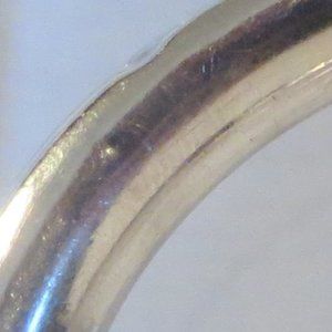 Offered is an antique sterling silver bangle bracelet with three faceted amethyst glass stones. This piece is from the late 1800’s. The bracelet it hollow and measures 2 ½” across the interior and 3 1/8” across the exterior and weighs 24.75 grams. The bracelet shows a few slight marks – see photos.