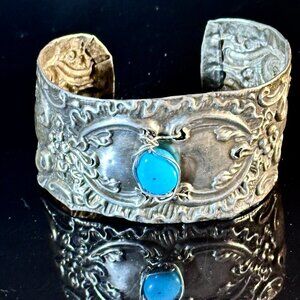 Antique Sterling Silver Cuff Bracelet Sleeping Beauty Turquoise 925 Victorian