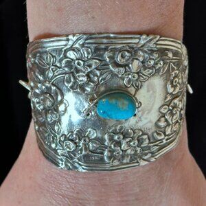Antique Sterling Silver Cuff Bracelet Sleeping Beauty Turquoise 925 Victorian