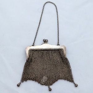Roaring 20's era sterling silver mesh wristlet with tons of charm. In great shape and functions just fine. I haven't gone into any deep cleaning as some folks like the patina of the old silver but it should clean up nicely if you want that shiny silver look.