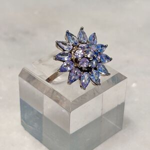 Antique Sterling Silver & Tanzanite Starburst Flower Cocktail Ring Blue Sz 4.75