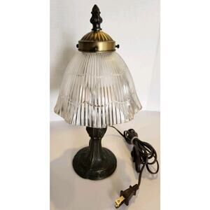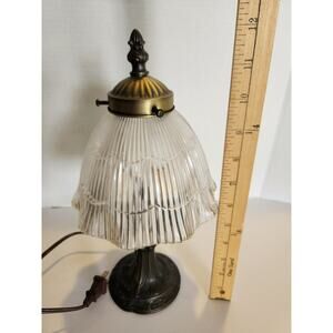 Antique Style 80s Table Lamp IKEA Halophane Prismatic Glass 12 1/2" H Metal Base