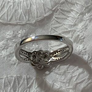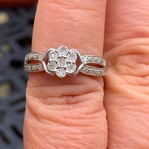 Antique Style Genuine Natural Diamond Floral Cluster Ring Sterling Silver Size 7