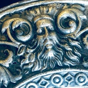 Antique Style Green Man Portrait of Cast Metal Charger Plate Wall Plaque 12”each