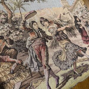 Antique Tapestry Embroidery Spanish Dancers Town Square