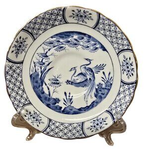 Antique Tea Cup & Saucer Blue White Birds Tuscan Fine English Bone China