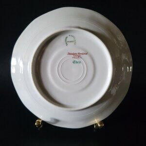 This bouillon cup and saucer set from Theodore Haviland Limoges features the delicate Eden pattern. Known for its intricate floral designs and vibrant colors, the set embodies a classic elegance that is ideal for collectors or those appreciating fine tableware.